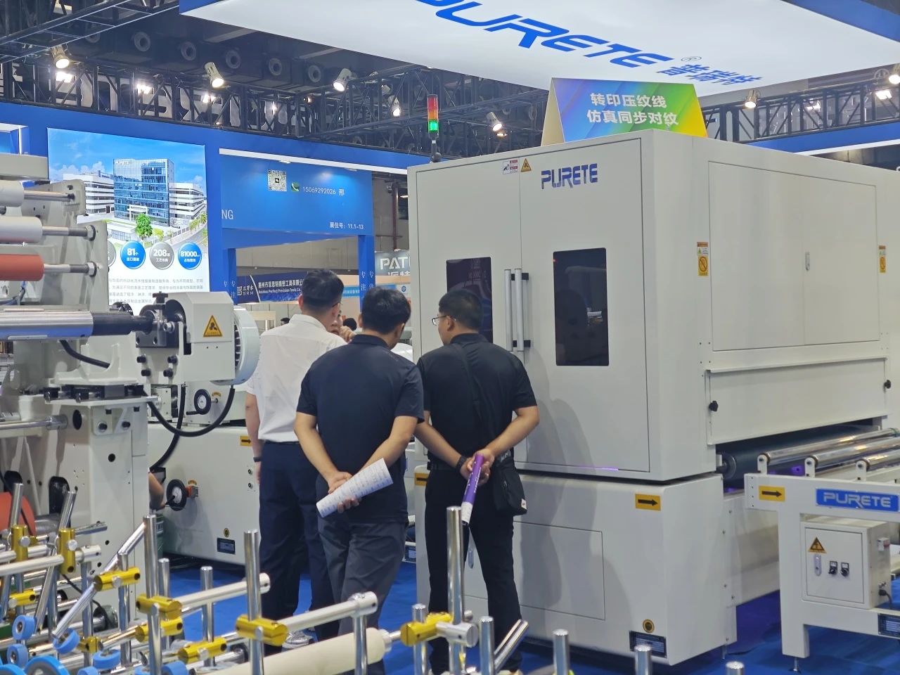 展會上最受矚目的是普瑞特自主研發的涂飾仿真同步壓紋生產線。普瑞特采用靠檔/對中結構和光學元件實現精準定位,使3D壓紋和打印圖案紋理對齊誤差控制在±0.2mm,較傳統工藝提升5倍精度。