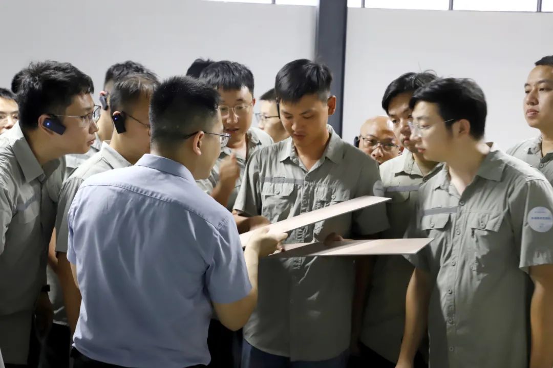 為了讓工程師們更直接地體驗飾面板生產過程,來到3000㎡的體驗中心。工程師們在我們的打樣體驗中心,親自體驗了淋涂高光、3D壓紋、PUR平貼、準分子膚感以及涂飾仿真同步壓紋等等工藝流程。工程師們與技術人員進行了交流,更直觀地感受到了普瑞特在涂飾上的精益求精,獲得了工程師們的一致認可。 萬科工程師們帶著專業的問題,與廣東瀚秋普瑞特技術團隊進行了深度交流。雙方在技術領域的智慧碰撞,共同探討中國智造的創新和方向。